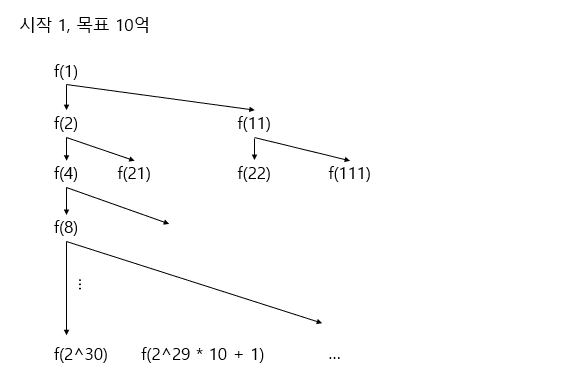 2. 1을 수의 가장 오른쪽에 추가한다. (n * 10 + 1)